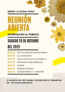 Reunión abierta para el público en general, información sobre el alcoholismo, lo que hace y no hace Alcohólicos Anónimos.